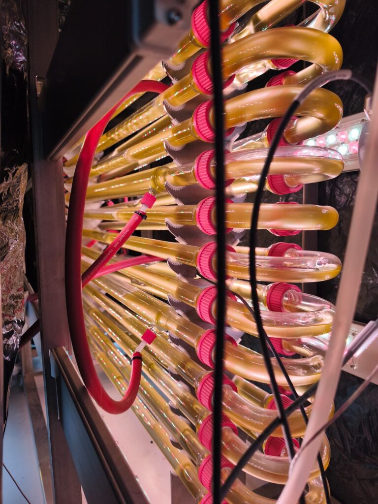 Producimos cepas de Isochrysis galbana de alta productividad. La producción se realiza indoor, en reactores tubulares y bajo condiciones específicas, para obtener microalgas de alto valor.